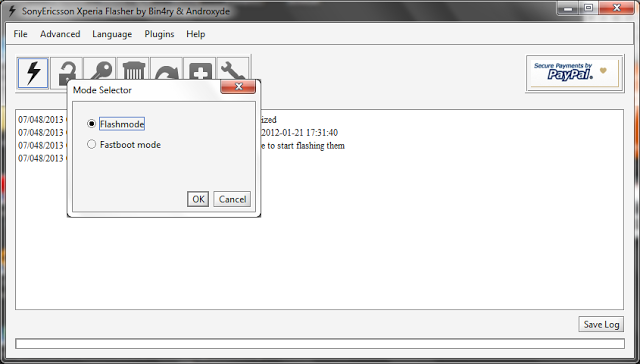 - Setelah itu jalankan aplikasi Flashtool, yaitu Flashtool.exe, tidak disarankan menggunakan Flashtool 64 walaupun menggunakan System Operasi 64 bit.