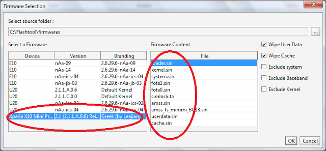 - Pilih Firmware xperia yang akan anda Flash, sesuaikan dengan tipenya